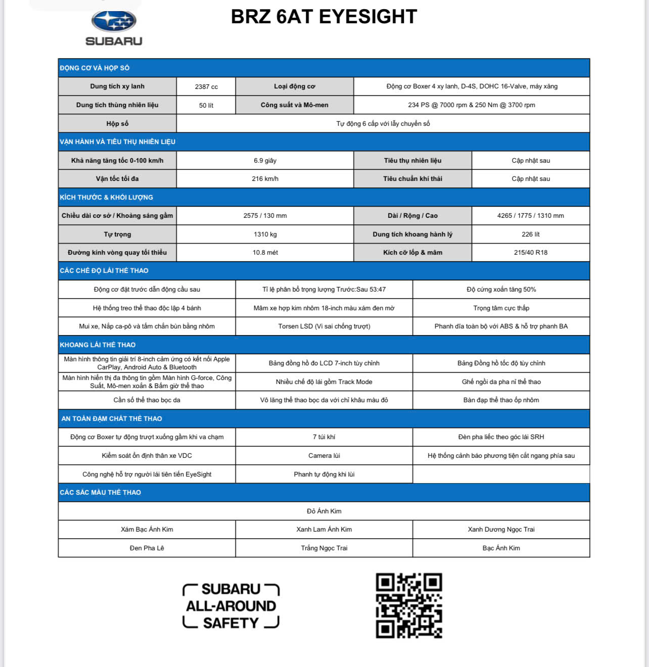 👉 Nếu Forester, Outback hay Crosstrek là lựa chọn cho sự an toàn và đa dụng, thì Subaru BRZ 2025 chính là chiếc xe dành cho đam mê – nơi cảm xúc lái được đặt lên hàng đầu.