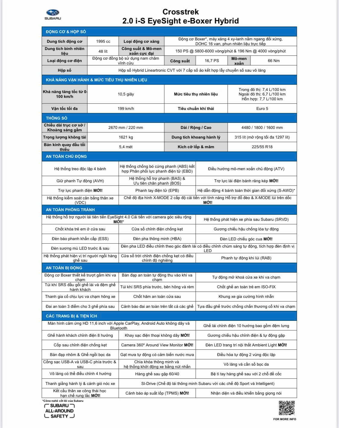 Crosstrek Hybrid (Nhập Nhật): 1.029.000.000
