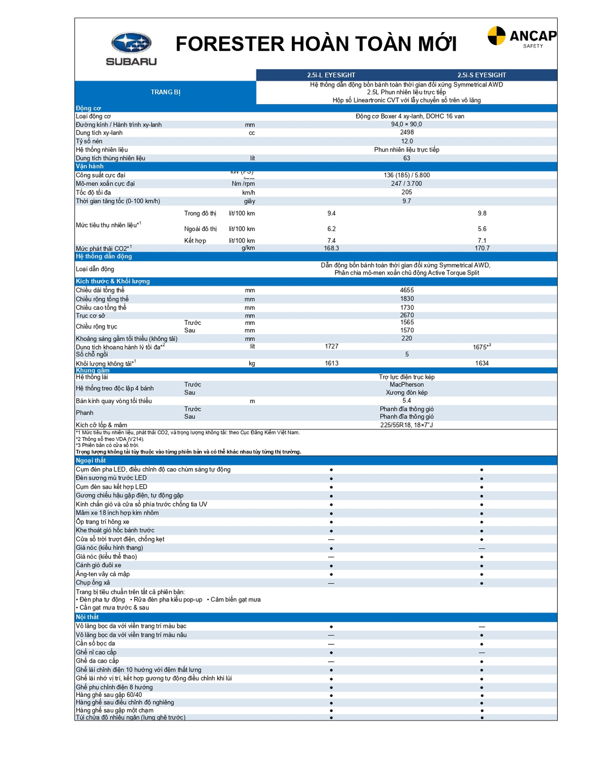 - Da – Màu Đen (Forester 2.5i-S EyeSight)
